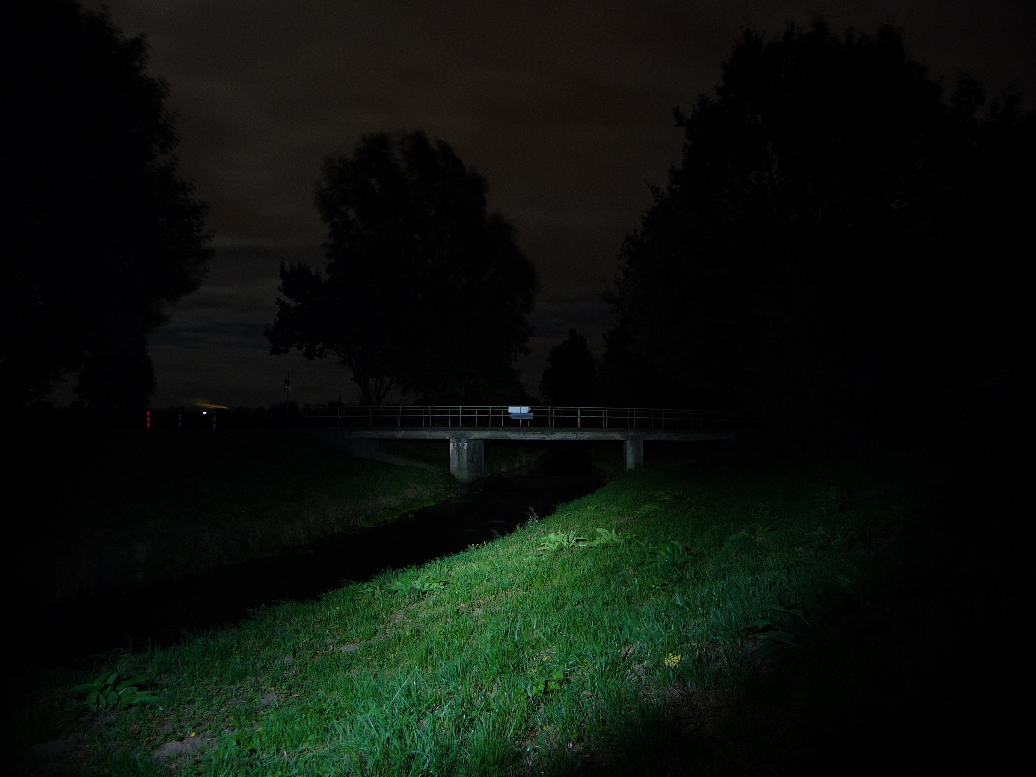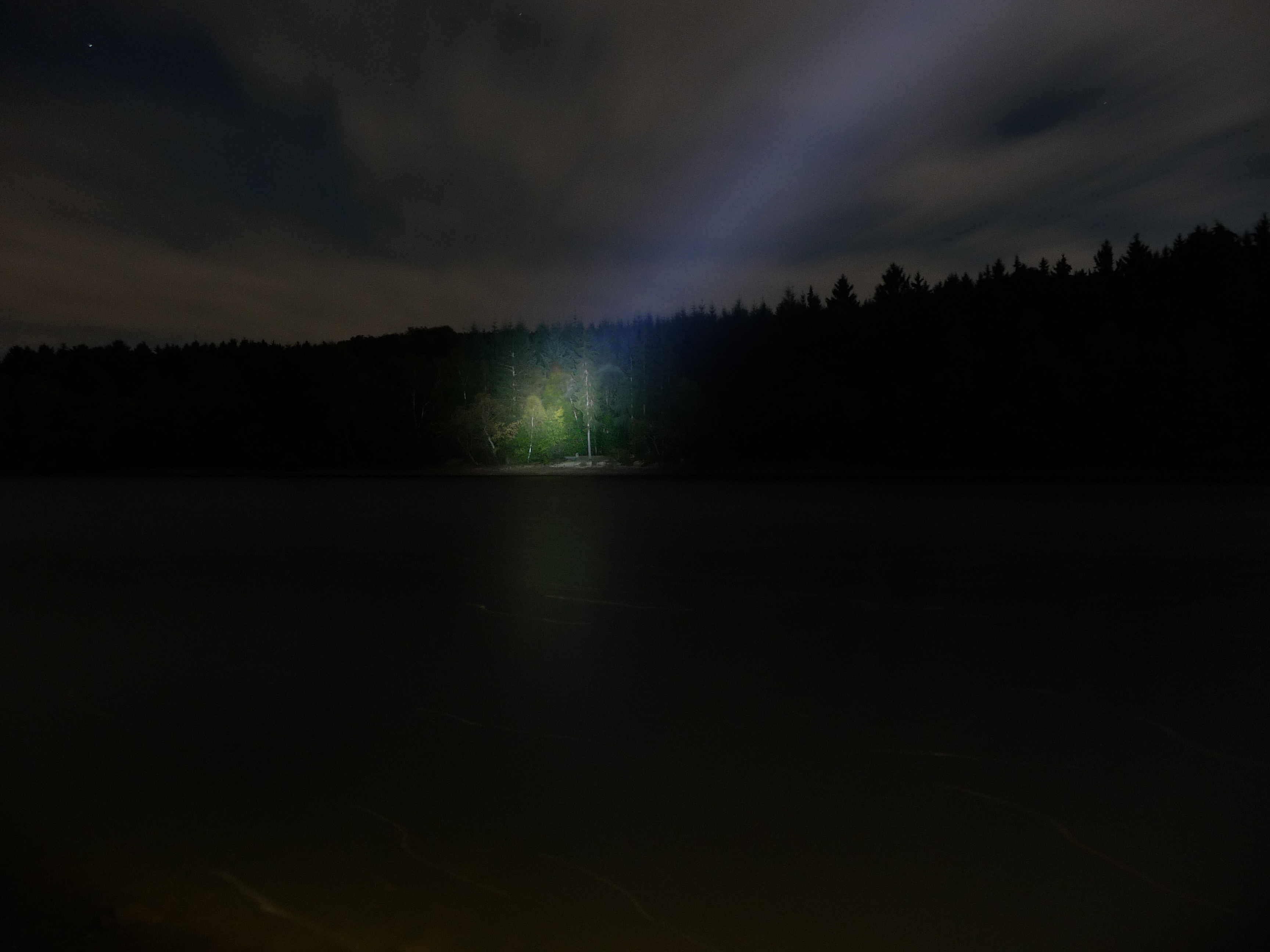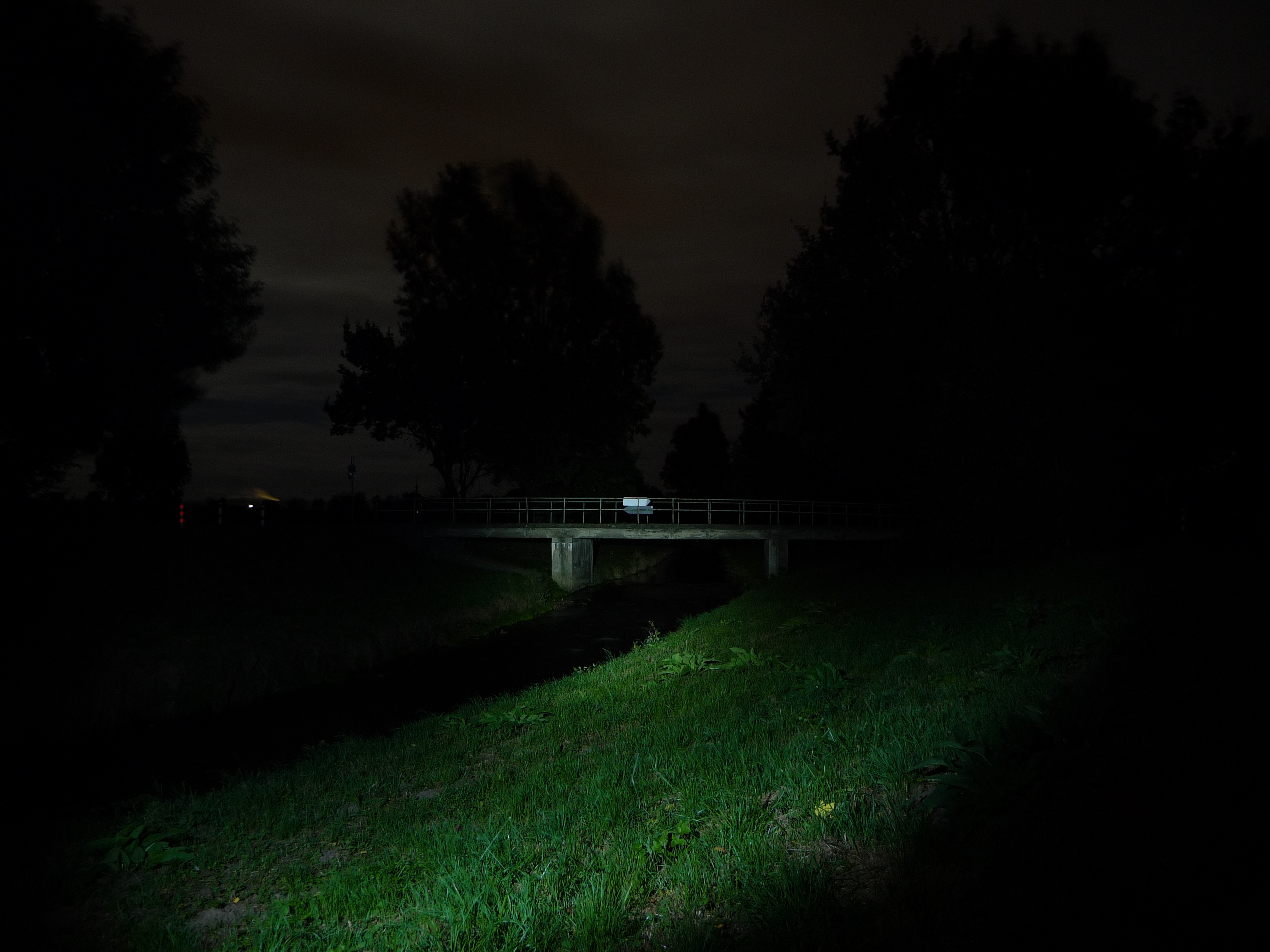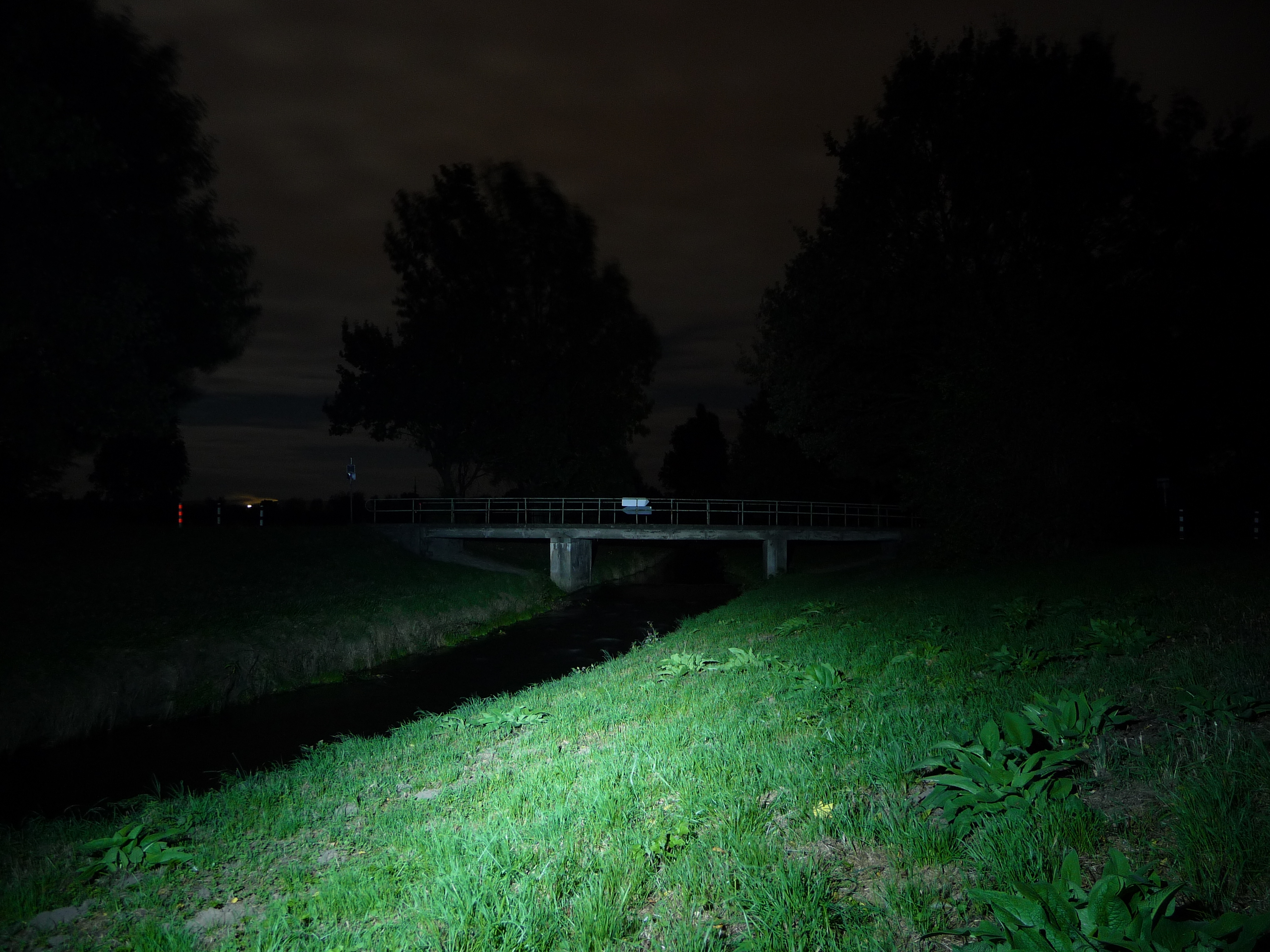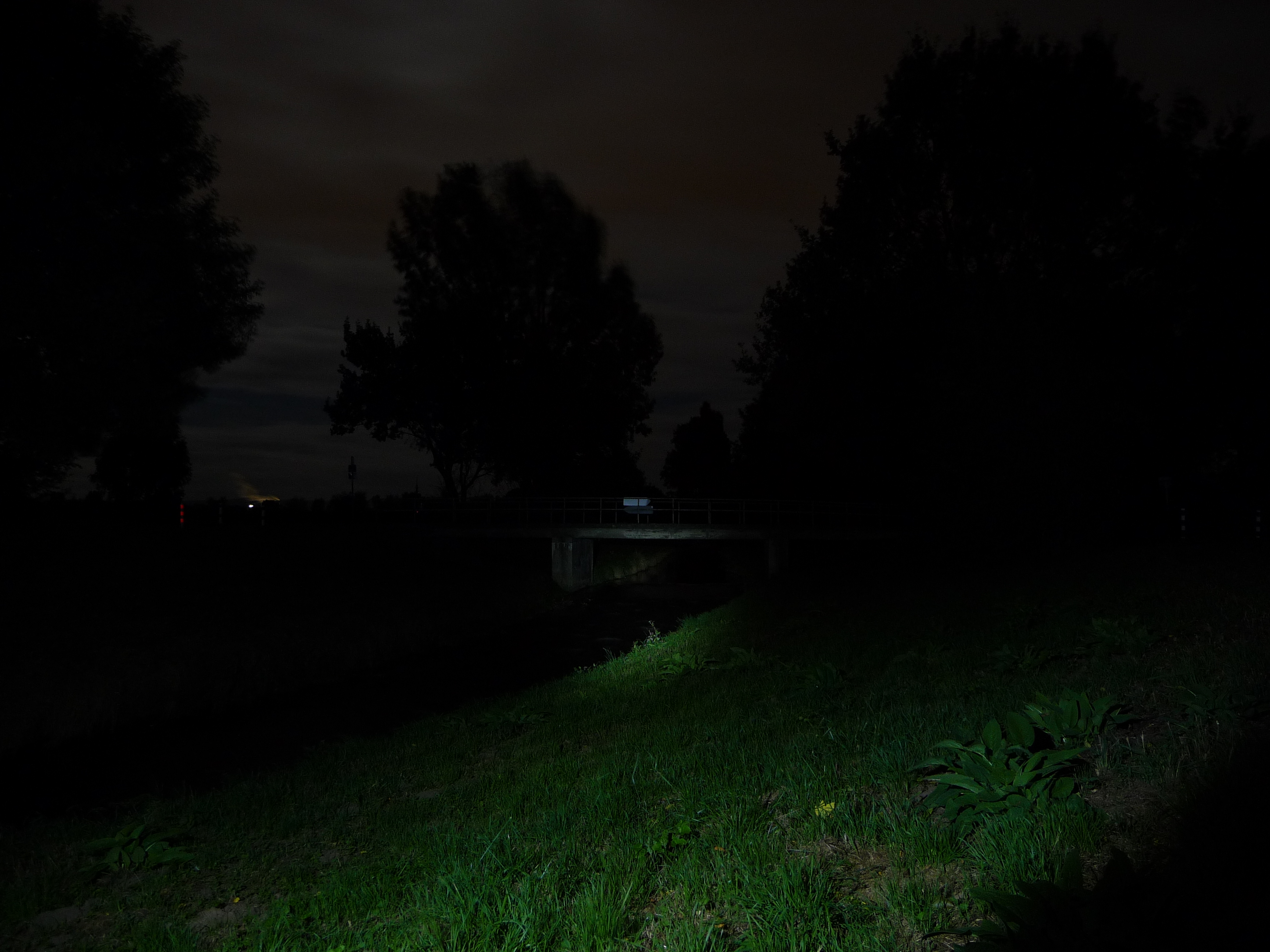 Distance to the bridge was about 35-40m, the targeted opposite shoreline behind the bridge should be at least 50m away. All lights except for the Xenide running on fresh protected 2600mAh AW 18650 cells.