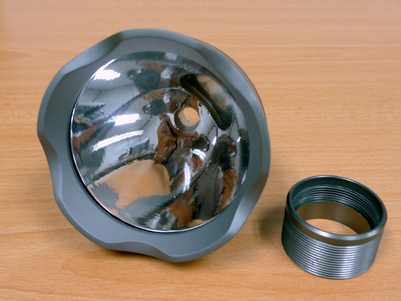 This head produces superior throw compared to the KT4 due to it's larger 3" VLOP reflector. It handles and looks very balanced especially on a Megalennium body but it'll also look fanastic on an SF M6. This head will fit any light that takes the SF KT4 head i.e. M6, M4, M3T and M3 and of course FM's Megalennium. It is presently unobtanium as they are no more available from FM and AFAIK there will not be another run of these. Comes with 2 adapters, one for the head and another to fit reflector instead of cam.